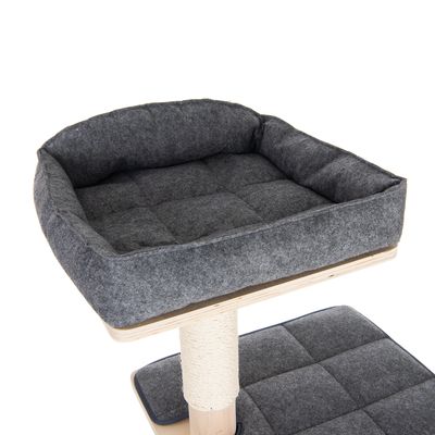 Luonnollinen raapimispuu, pylväät aitoa puuta, osittain päällystetty sisalilla, useita tasoja, karhennetusta huonekalukankaasta valmistetut, irrotettavat tyynyt, mökki ja pehmeä peti, mitat: K 163 cm